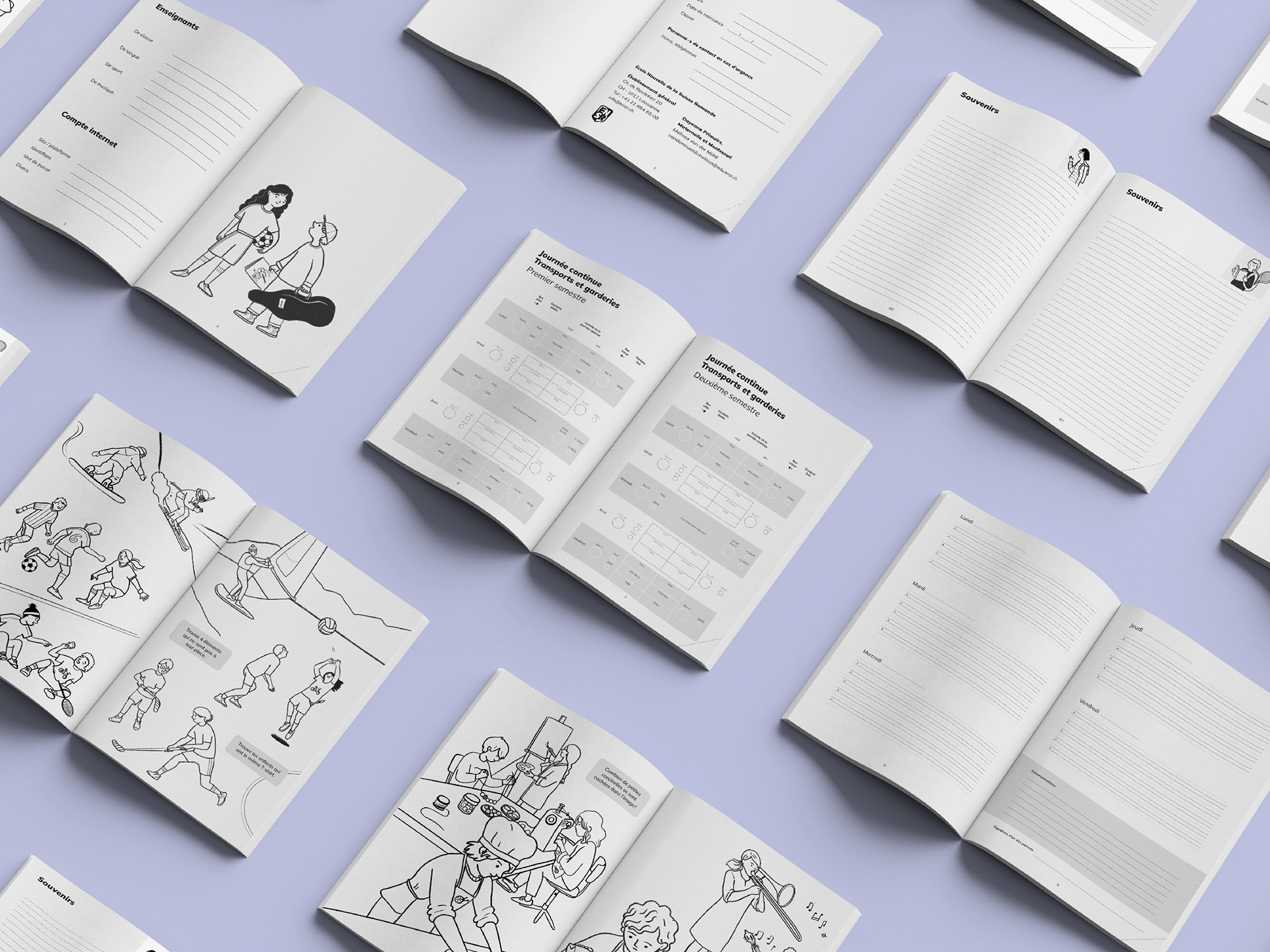 Illustrations et mise en page des agendas de classe pour les élèves de l'école primaire de l'École Nouvelle de la Suisse Romande.
