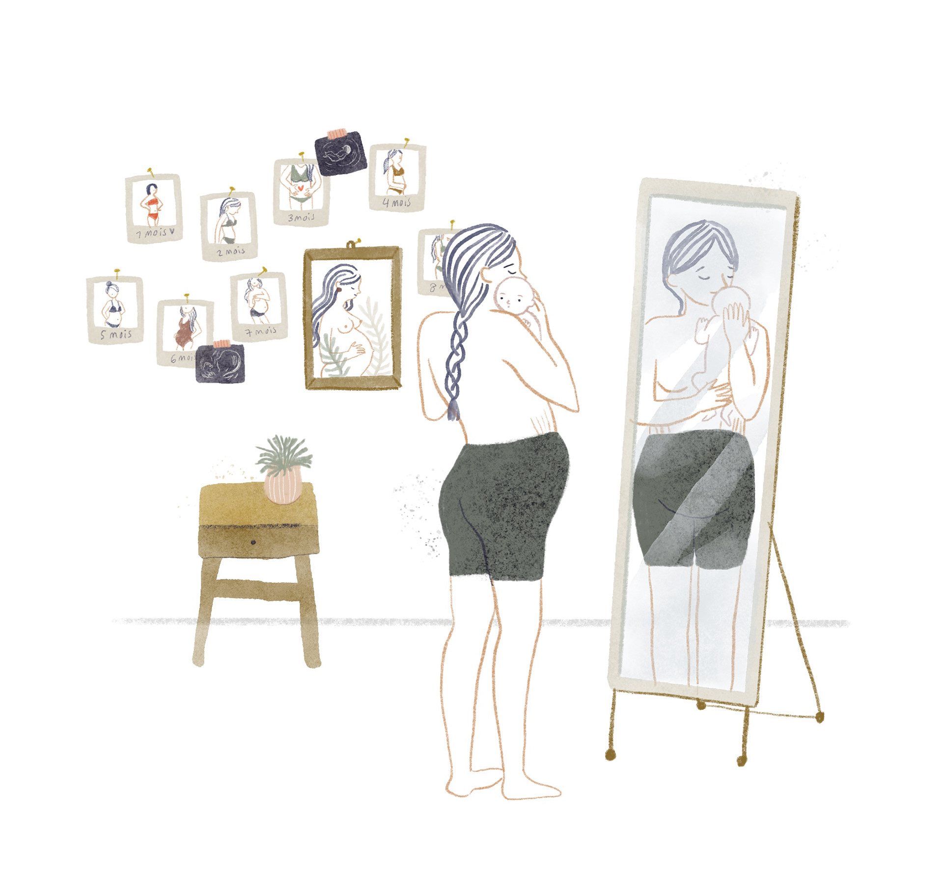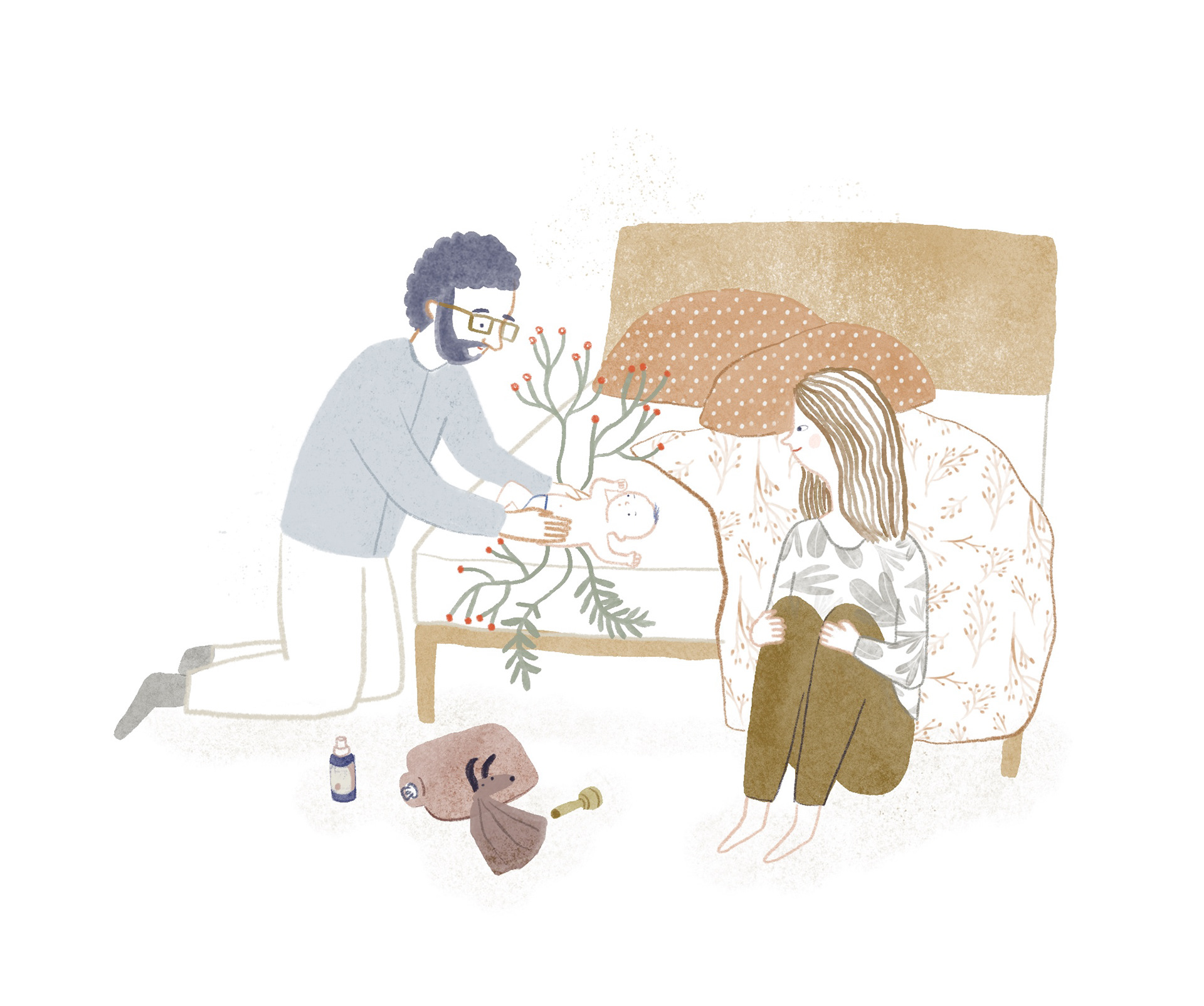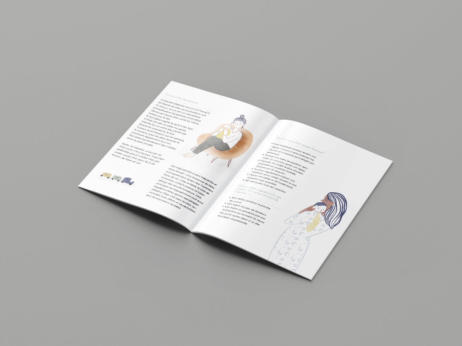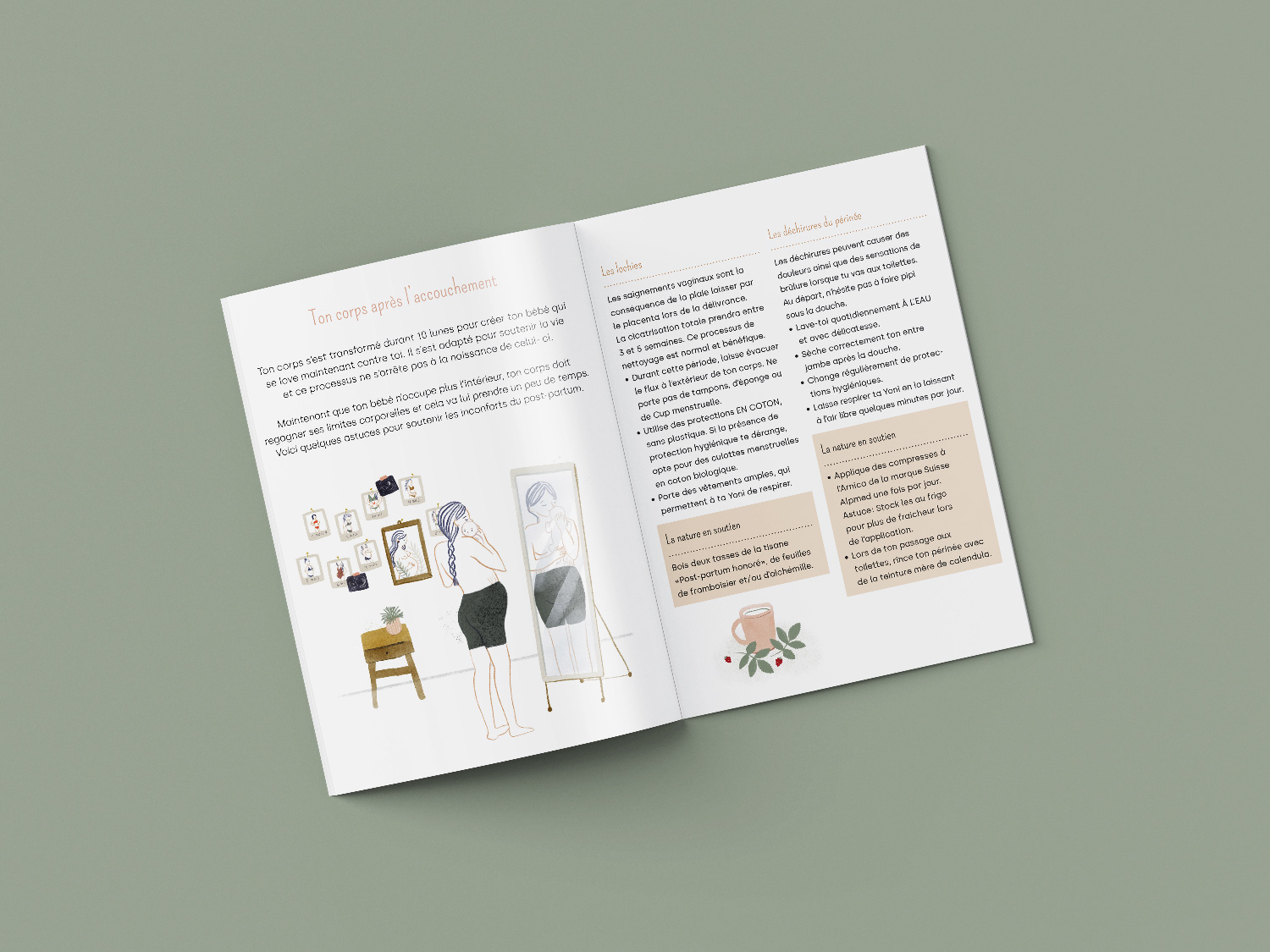 Illustrations et mise en page pour un petit manuel pratique sur le thème du post-partum. Pour Bhumi naissance.