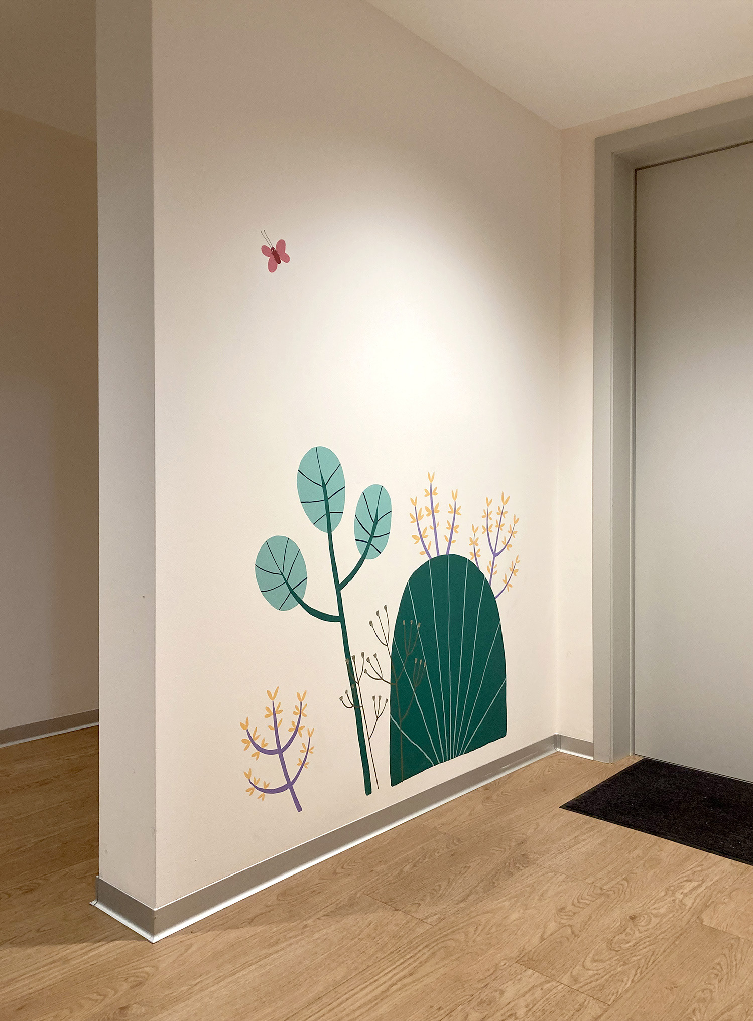 Peintures réalisées sur les murs du cabinet de Pédiatrie du Faubourg… projet commencé en 2015 et poursuivi en 2021.