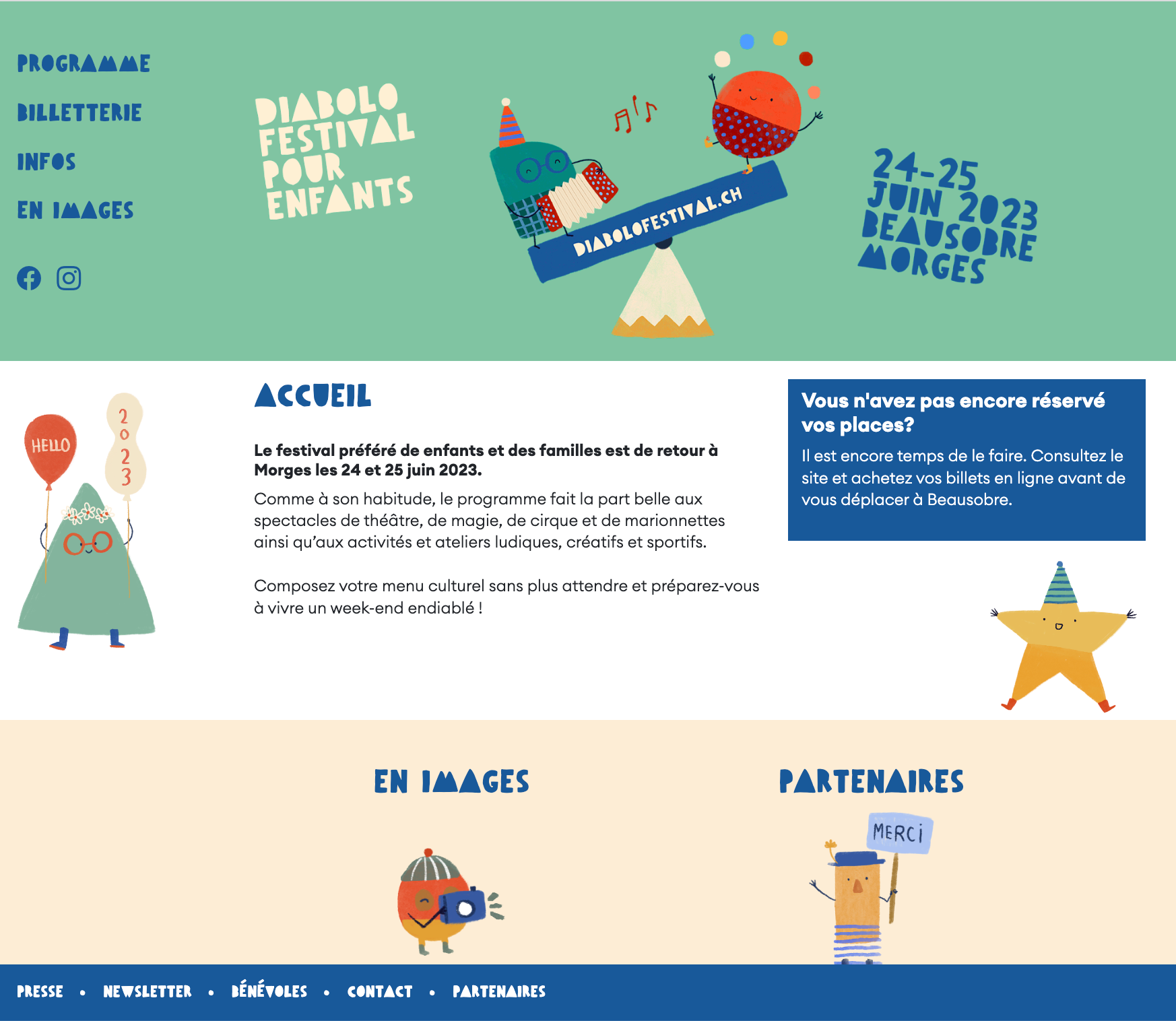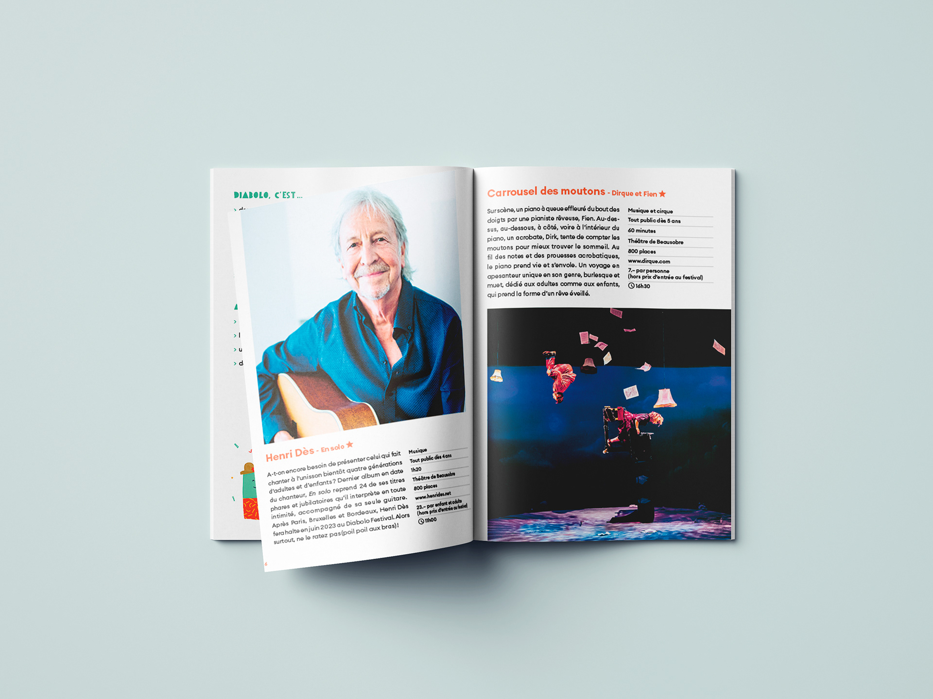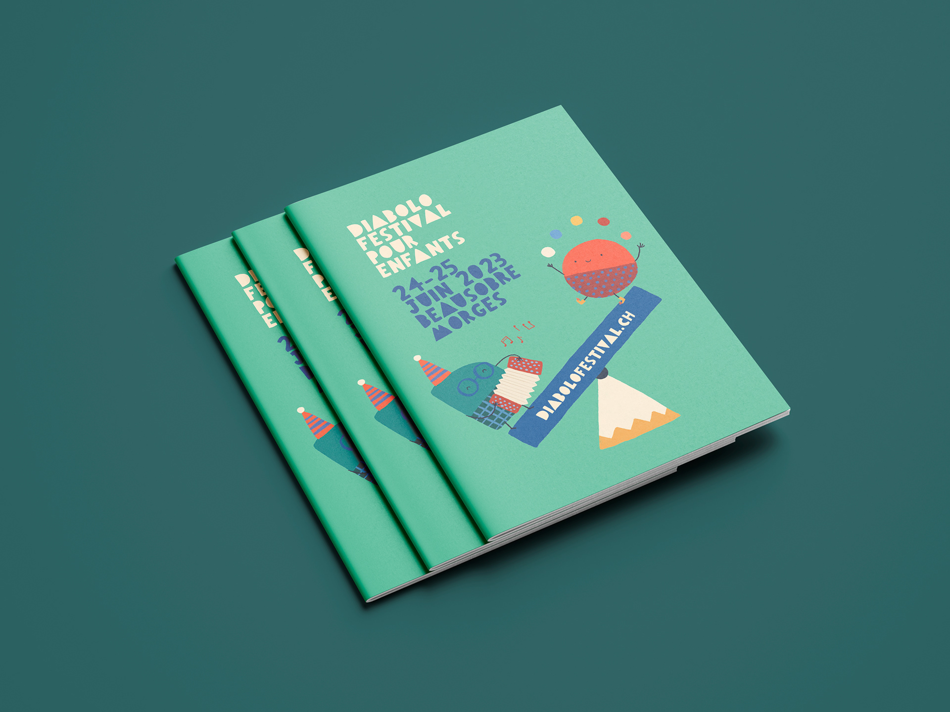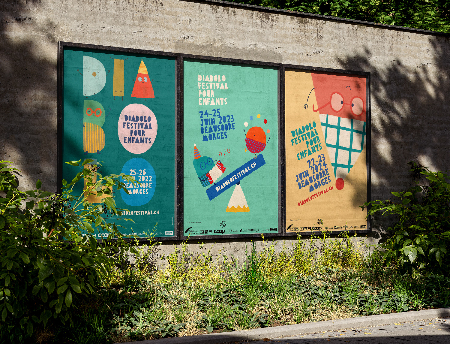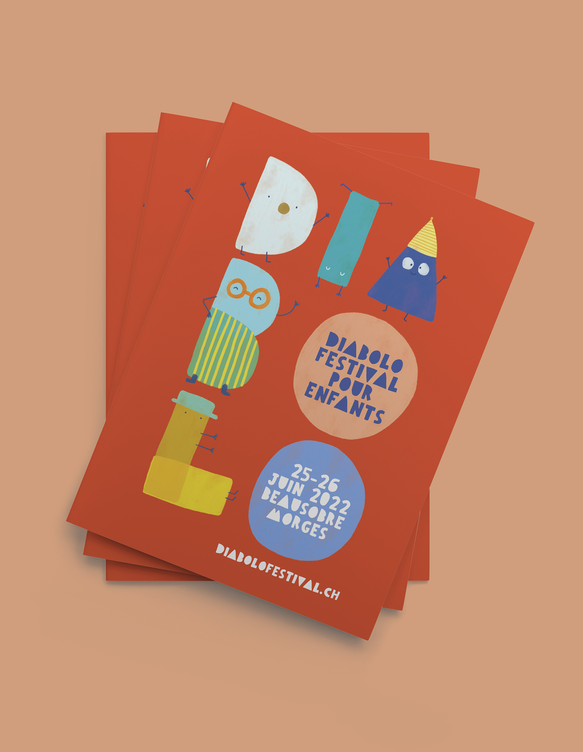 Identité visuelle globale du Diabolo festival depuis 2022: Concept, affiches, typographie, flyers, programmes, maquette du site et toutes les illustrations qui se cachent dans les petits coins...