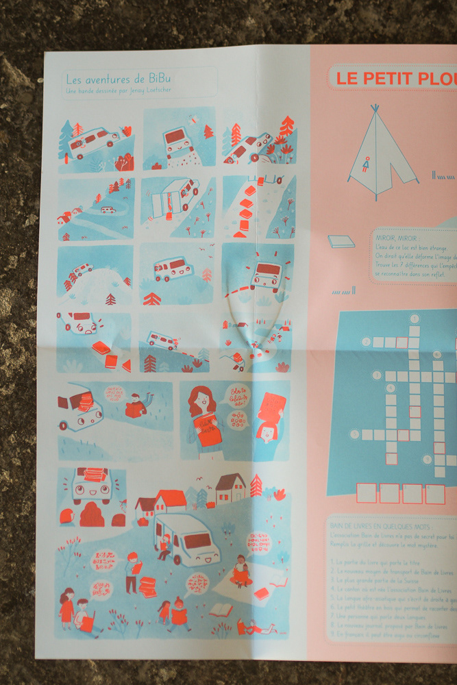 Bain de livres édite quatre fois par année le magazine Plouf. Les pages dédiées aux enfants proposent les aventures de Bibu, que j'ai la chance d'illustrer en BD.