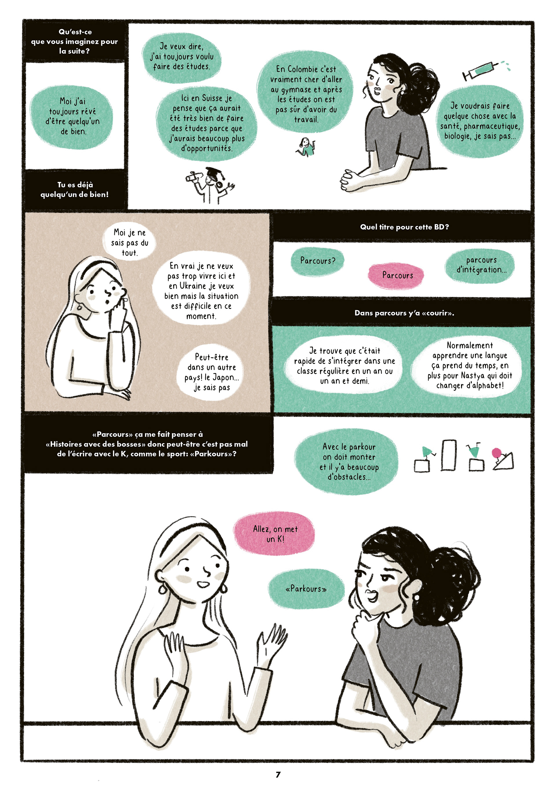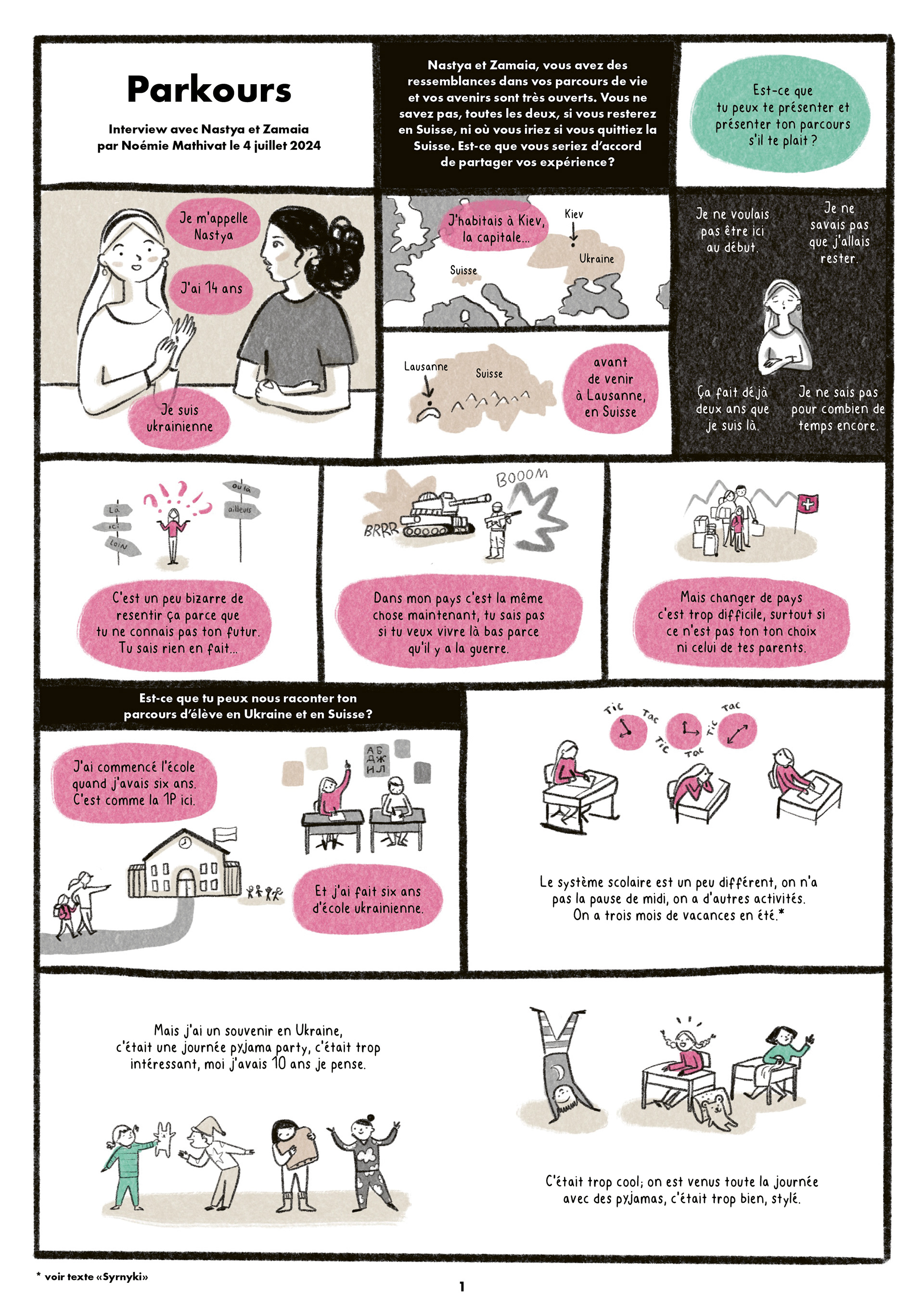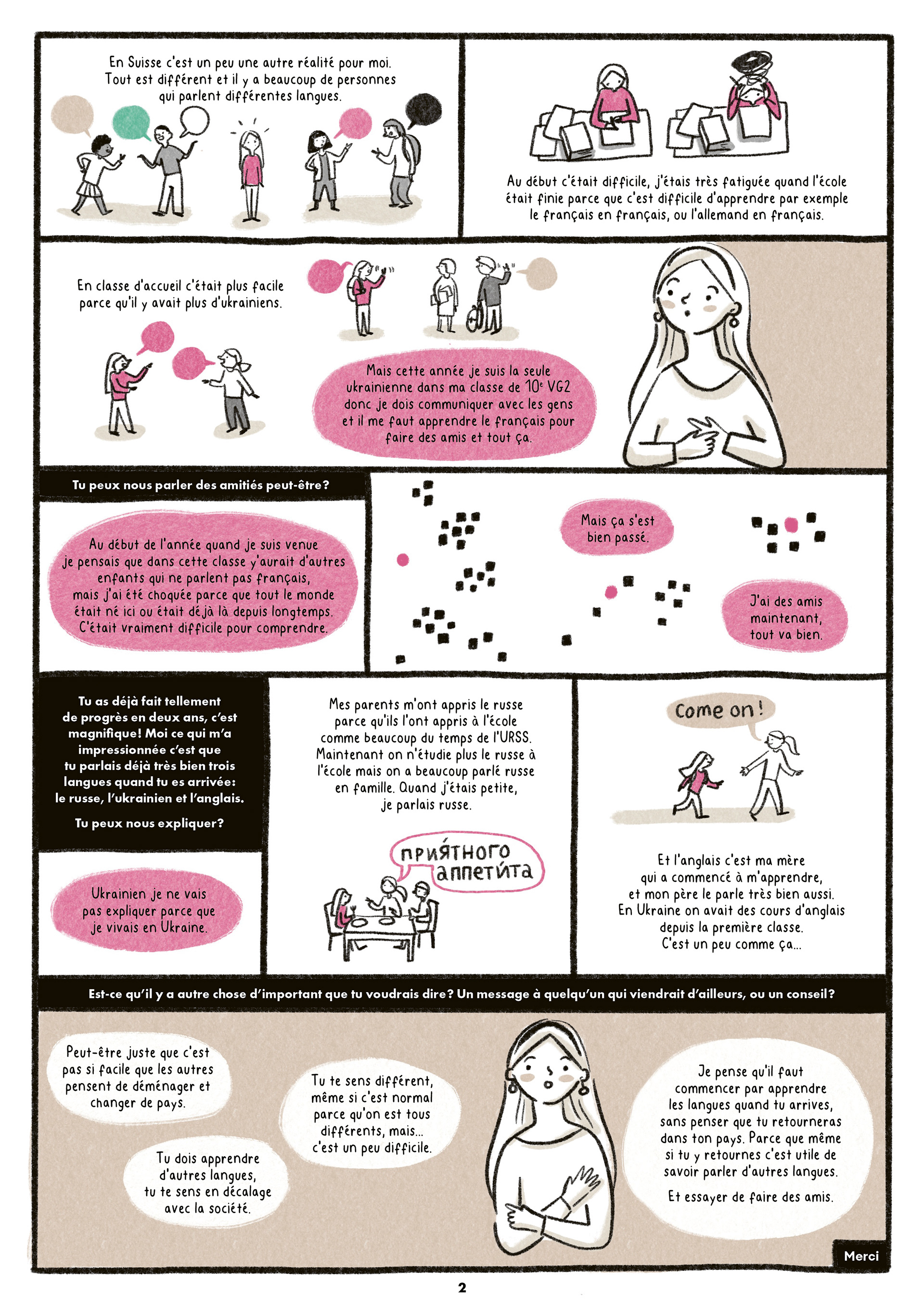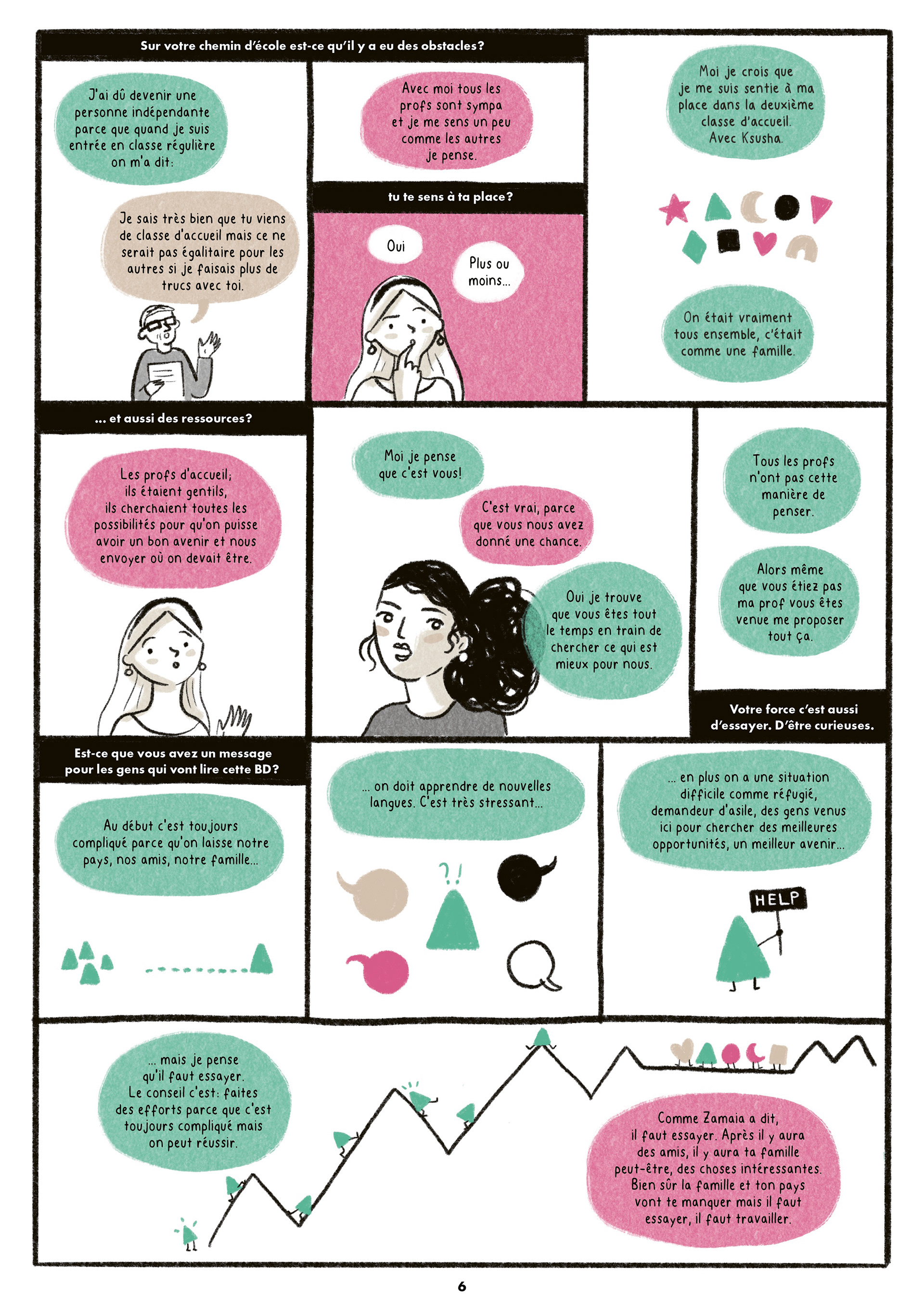 Interview croisée en BD sur le thème de la migration. Réalisation pour l'association TRAMES.